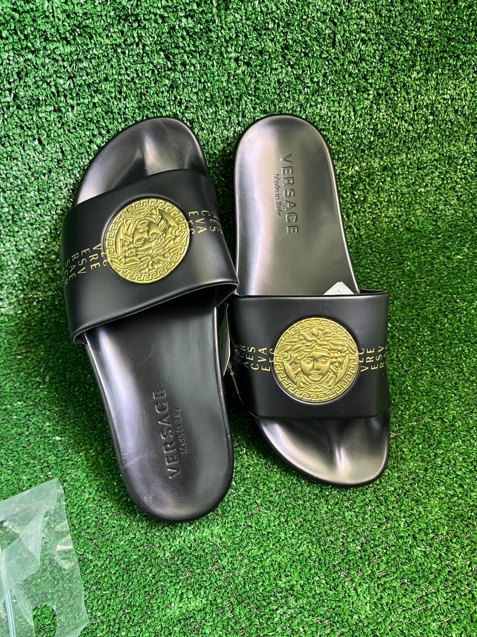 Versace Black Slide with Gold Logo - Size 40 - Size 40